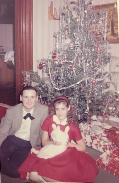 As I recall, the nights were always bitter cold on our noses and cheeks. I guess I wasn’t really dressed for the New Jersey weather in my Christmas party dress and black patent leather shoes. I don’t know for sure that they were always black patent leather, but that image sticks with me. Hats, mittens, and scarves were tucked around me, probably around Tom, too, as we hopped, danced, and paced up and down the sidewalk on Clinton Avenue in front of our house. Sometimes we were on cement, sometimes on ice and snow. The basic scene was always the same.